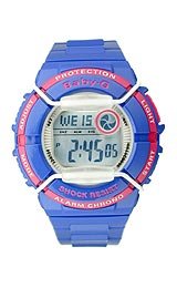 Casio's Baby-G casual watches are meant for active young women. Along with the toughness inherited from G-Shock, including both shock and water resistance, the Baby-G brand offers fashion appeal created by individualistic styling and creative color use, as well as a range of functions including World Time. The new BGD-120P watches are water resistant to 200 meters, which makes them perfect for ocean sports. These Baby-G watches boast a fun, pop design suitable for leisure activities. In addition to a wire protector to buffer the watch from shocks, they feature a large button for the often-used EL backlight, with the Baby-G brand logo rendered in raised lettering to enhance finger grip and ensure better operability.